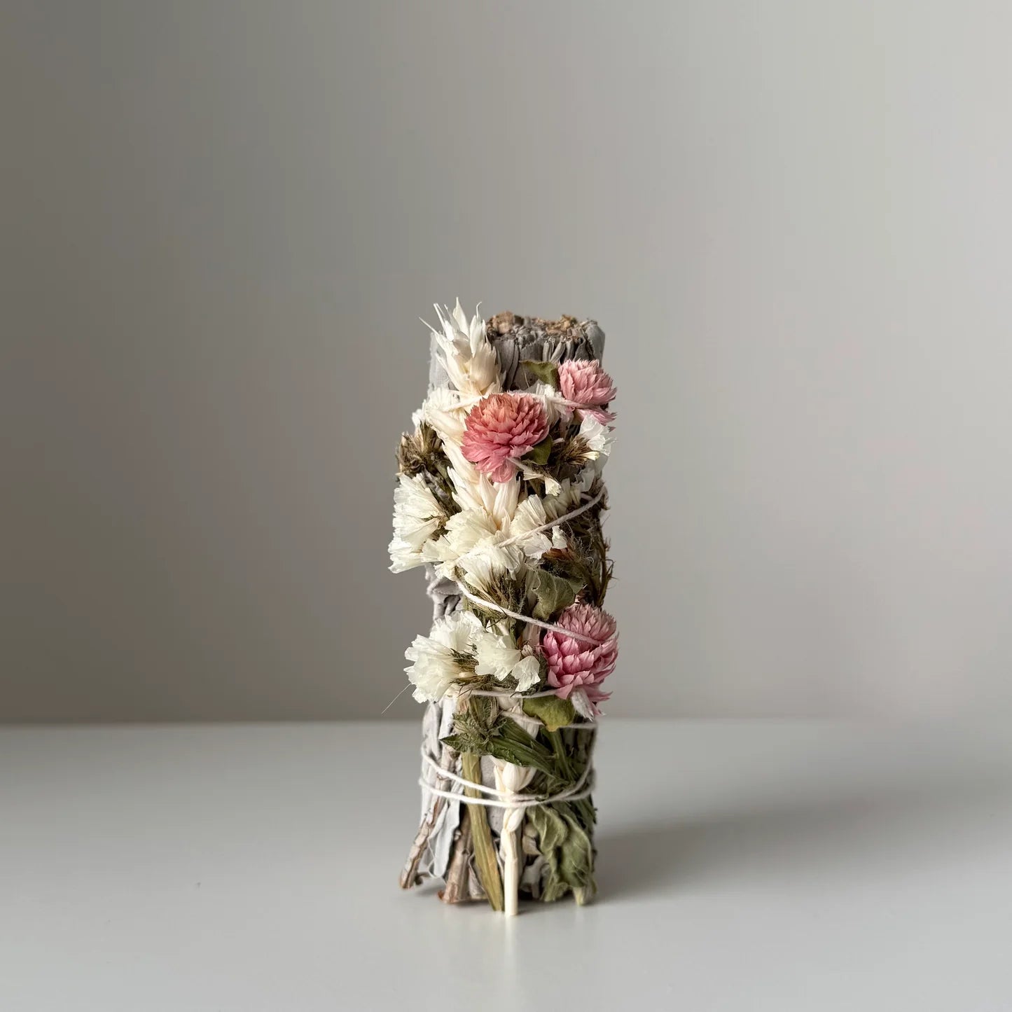 - Recette florale : sauge blanche, statice, blé blanc et gomphrenas