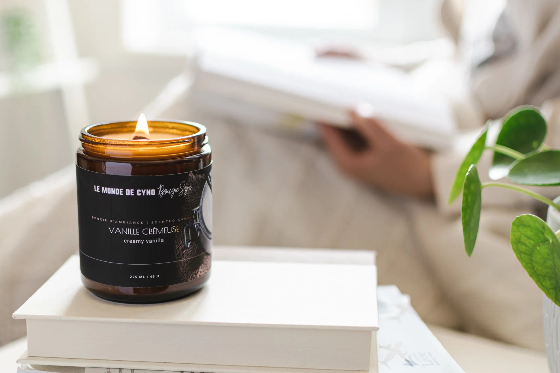 Notre bougie à la vanille crémeuse évoque les saveurs de la vanille pure, avec ses notes sucrées et onctueuses qui vous transportent dans un monde de douceur et de gourmandise!