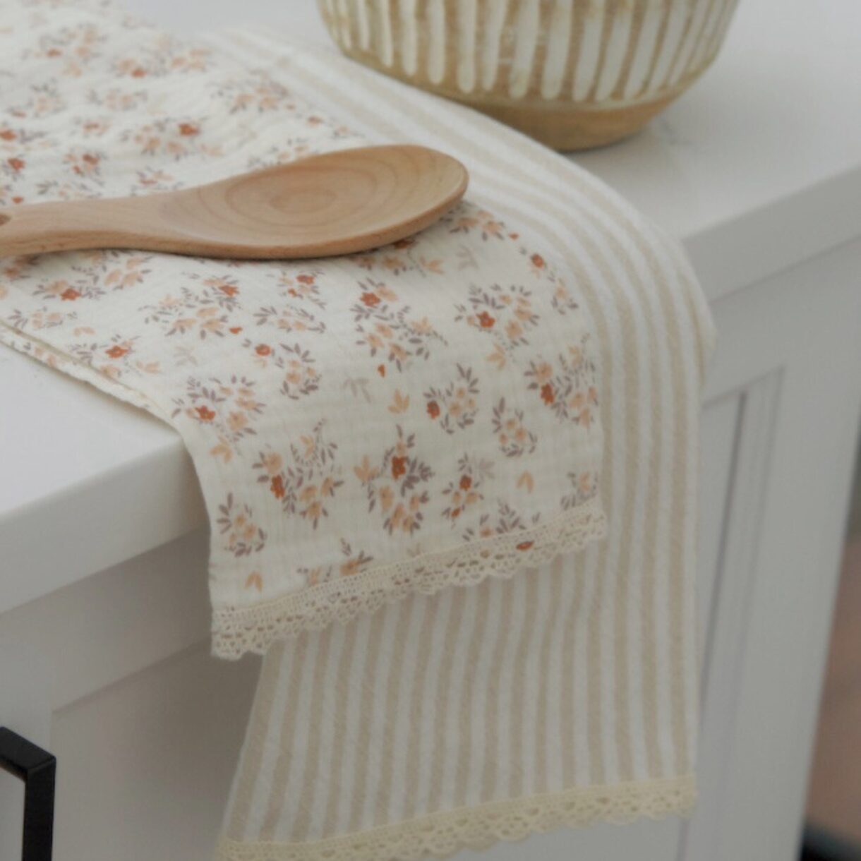 Linges à vaisselle en mousseline et coton