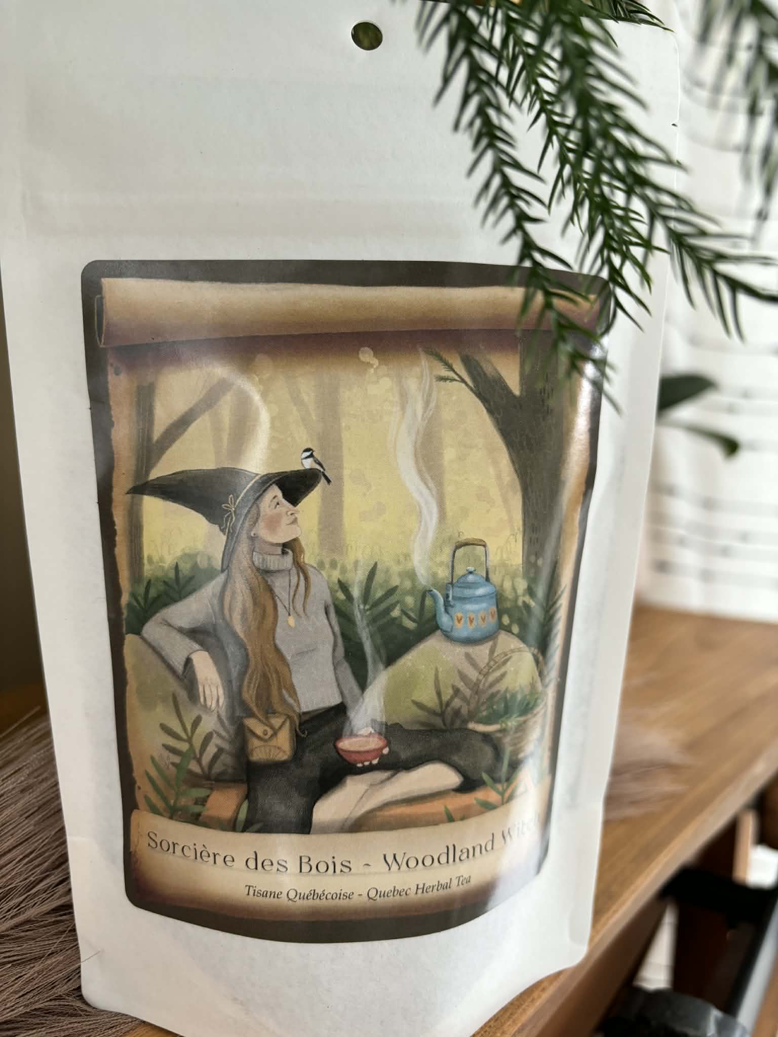 La Sorcière des Bois est une tisane boisée au goût de conifères rappelant les forêts québécoise. Elle est constituée de sapin baumier et de thuya, deux grands alliés lors de rhumes et grippes ou de problèmes pulmonaires. Les historiens hésitent encore quant à savoir lequel de ses deux arbres a sauvé les colons du scorbut lors de leur arrivée en Amérique, grâce à la vitamine C qu'ils contiennent. L'ortie ajoutée au mélange est très nutritive et riche en minéraux, ce qui en fait une grande amie pour les personnes souffrants d’anémie. Elle est aussi idéale pour les personnes qui ont des allergies.